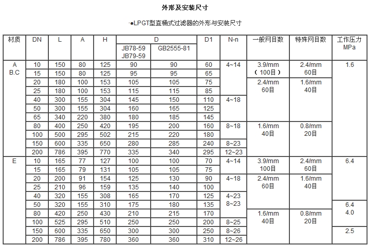 詳細信息 LPGX-15I,LPGX-25I,LPGX-40I,LPGT-40A,LPGT-50A,直桶式過(guò)濾器