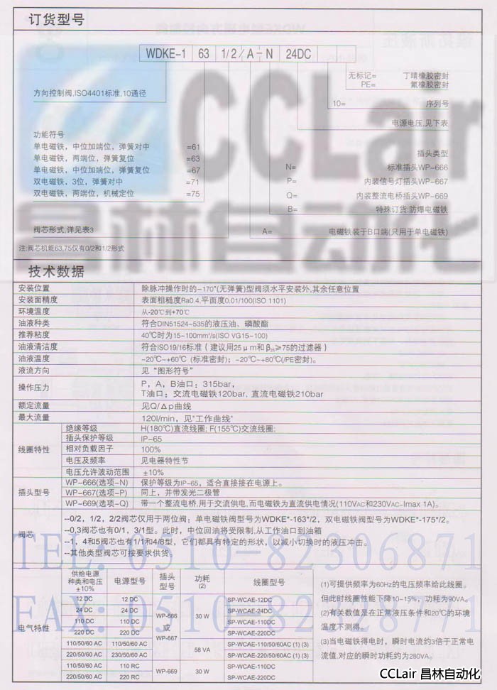 詳細信息 WDKE-1611/2,WDKE-1630/2,WDKE-1670/2,WDKE-1710/2,WDKE-1751/2,電磁方向控制閥