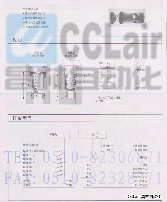 單向閥 WSR6KE30-10 WSR8KE30-10 WSR10KE30-10 WSR15KE30-10 WSR型插裝式單向閥