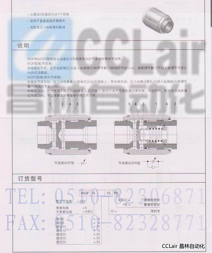 節流閥 WQFR25-10 WQFR30-10 WQF6-10 WQF8-10 WQF/WQFR型節流閥/單向節流閥