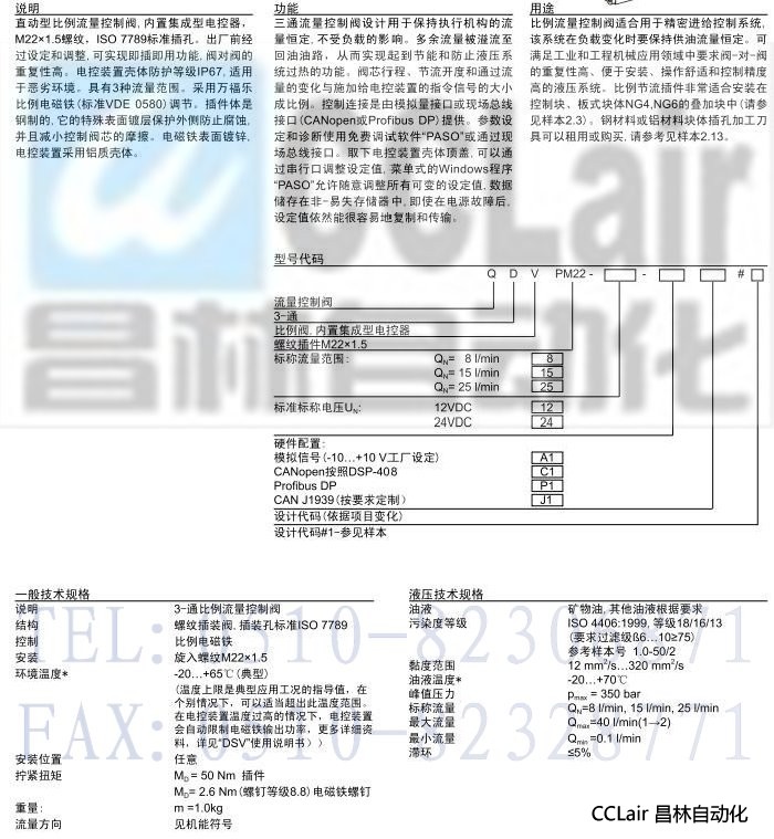 QDVPM22,插裝式比例 3-通流量控制閥(內置集成型電控器)
