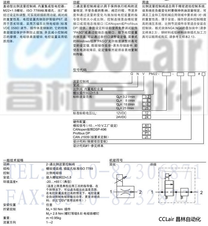 QNVPM22,插裝式比例 2-通流量控制閥(內置集成型電控器)