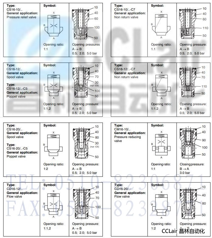 CS16-10/0/0-C7,CD16-12/05/0.4-C5,CM16-20/20/0.6-C7,2通插裝閥