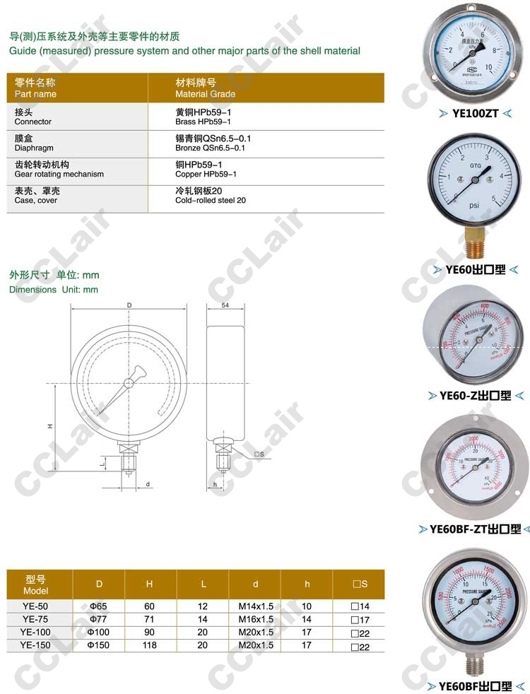 YE-50,YE-75,YE-60,YE-60ZT,YE-100,YE-150,膜盒壓力表,無(wú)錫昌林
