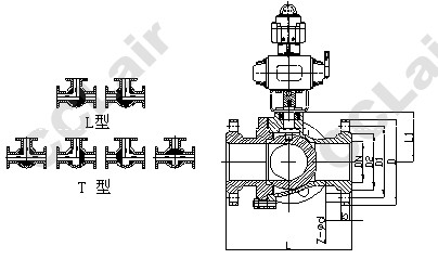 三、氣動(dòng)三通球閥(調節型/開(kāi)關(guān)型)尺寸及參數: