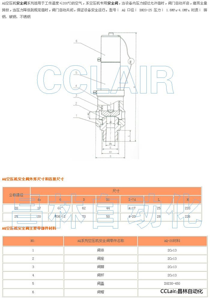 詳細信息 AQ-20,空壓機安全閥