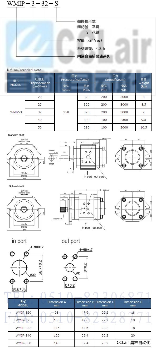 WMIP-320,WMIP-325,WMIP-332,WMIP-340,WMIP-350,內齒輪泵浦