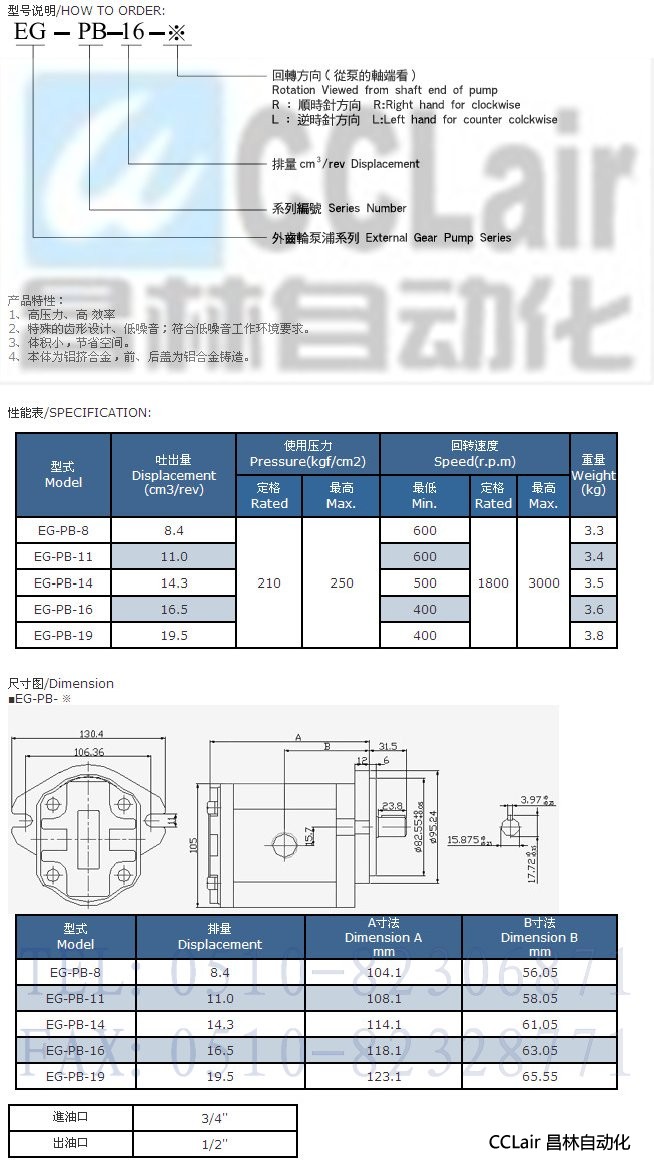 EG-PB-8,EG-PB-11,EG-PB-14,EG-PB-16,EG-PB-19,外齒輪泵浦