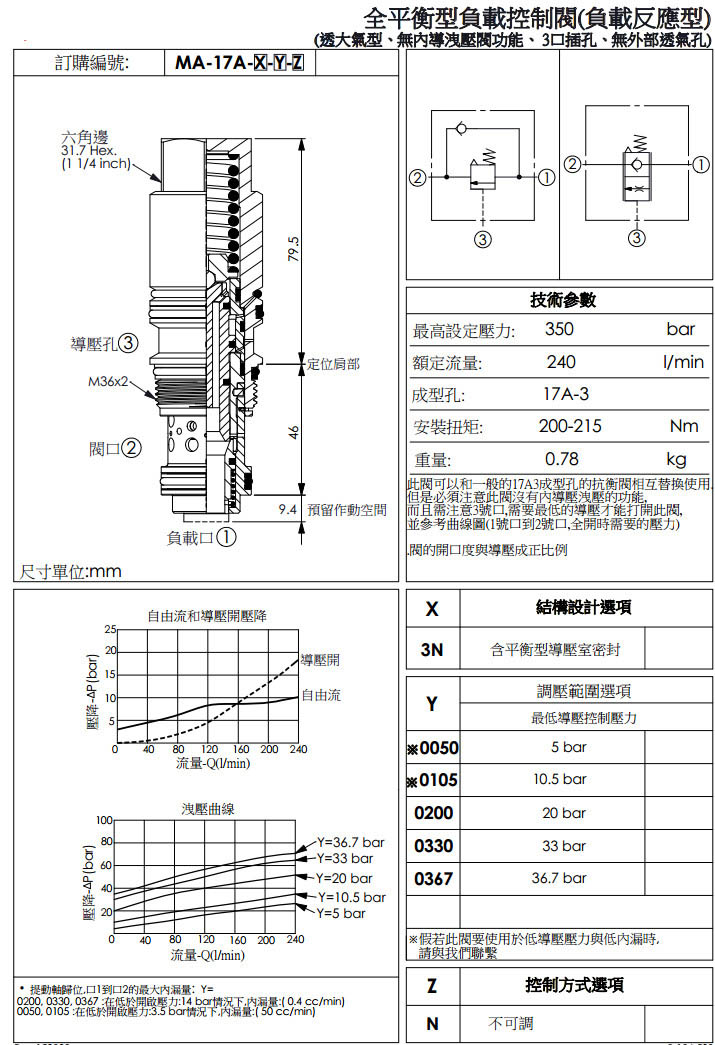 詳細信息 MA-17A-3N-0050-N,MA-17A-3N-0105-N,MA-17A-3N-0140-N,MA-17A-3N-0200-N,winner全平衡型負載控制閥