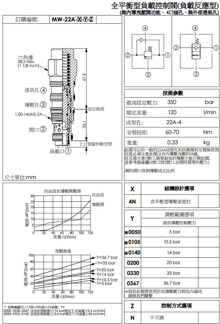 MW-22A-3N-0050-N,MW-22A-3N-0105-N,MW-22A-3N-0140-N,MW-22A-3N-0200-N,winner全平衡型負載控制閥