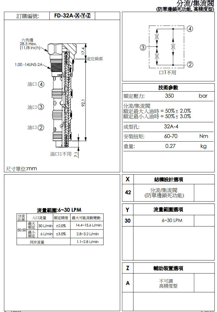 FD-32A-42-30-A,winner分流/集流閥