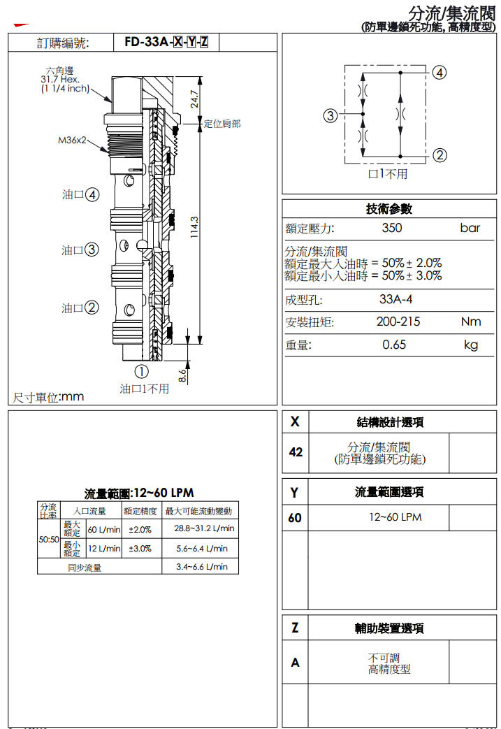 詳細信息 FD-33A-42-60-A,winner分流/集流閥