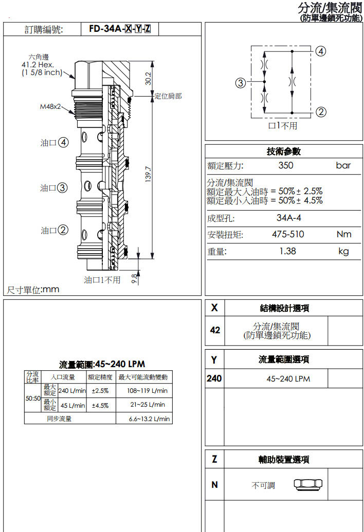 FD-34A-42-240-N,winner分流/集流閥