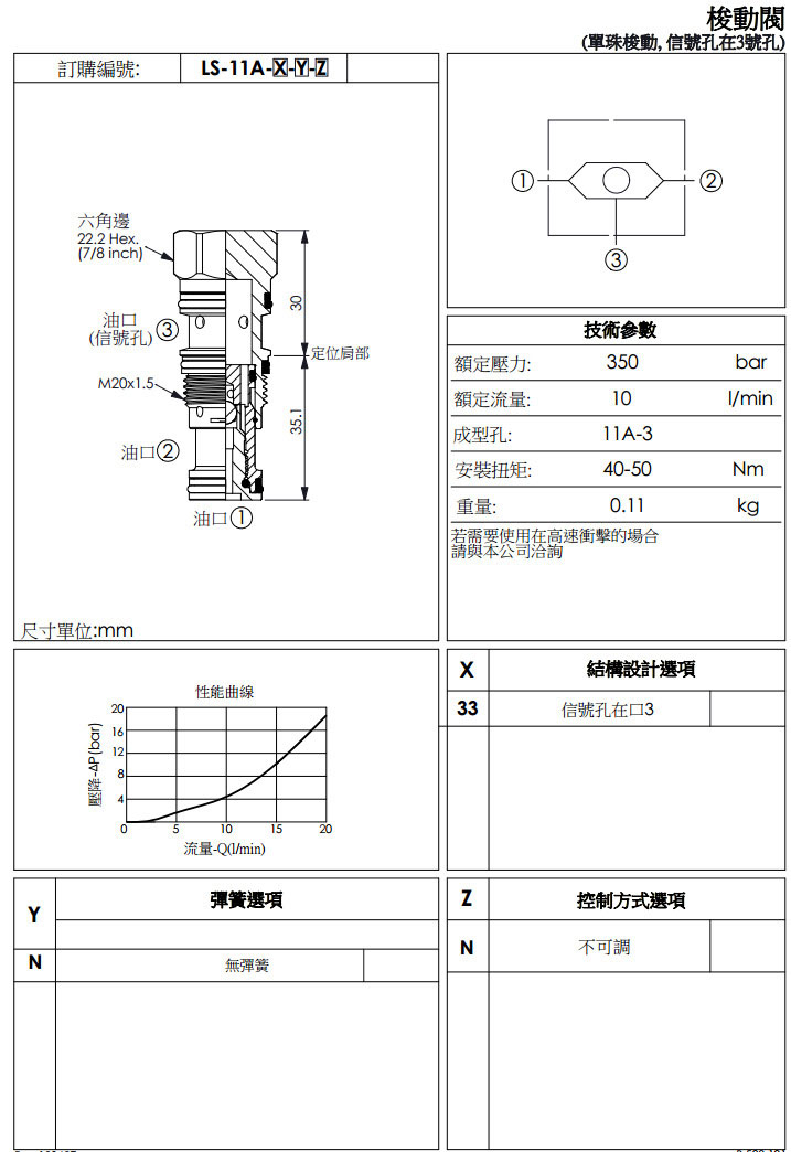 詳細信息 LS-11A-33-N-N,winner梭動(dòng)閥