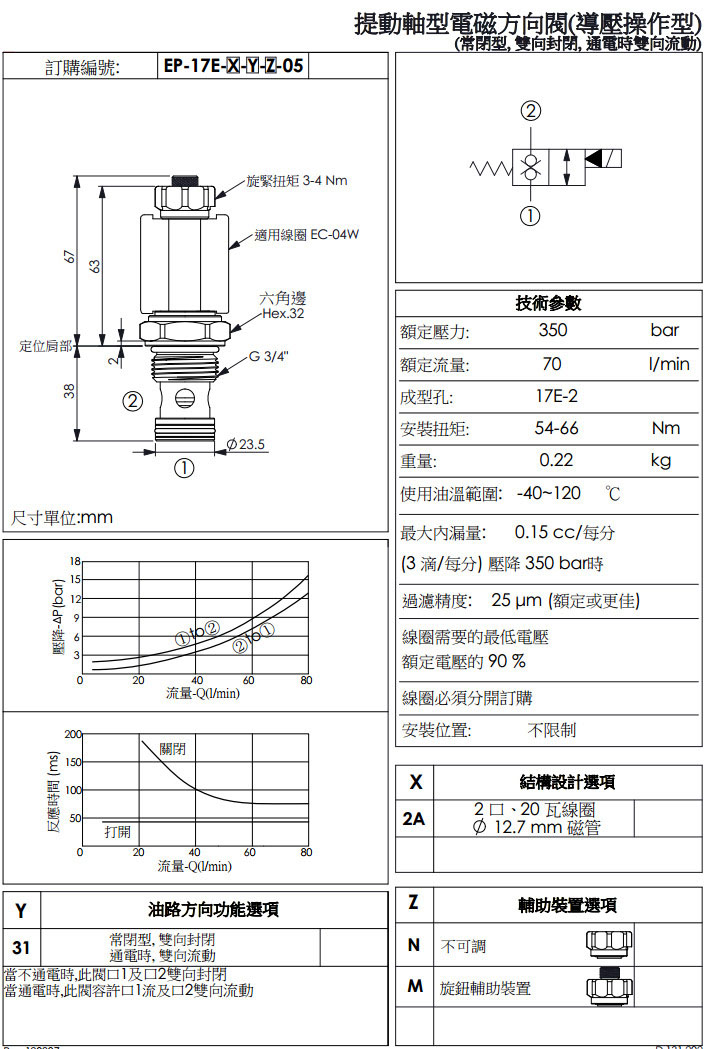 詳細信息 EP-17W-2A-31-N-05,EP-17W-2A-31-M-05,EP-17W-2A-31-N-85,EP-17W-2A-31-M-85,winner提動(dòng)軸型電磁方向閥