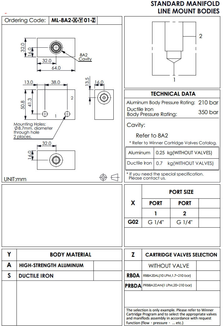 ML-8A2-G02-A01-RB0A,ML-8A2-G02-S01-RB0A,ML-8A2-G02-A01-PRBDA,ML-8A2-G02-S01-PRBDA,winner標準配管式油路板