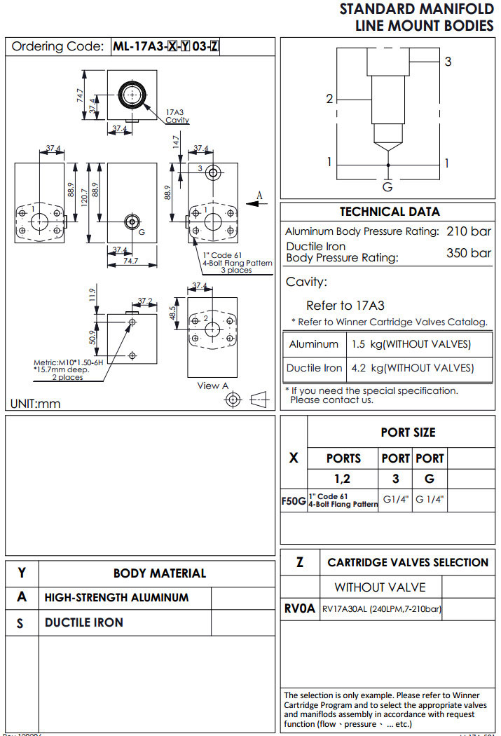 ML-17A3-F50G-A03-RV0A,ML-17A3-F50G-S03-RV0A,winner標準配管式油路板
