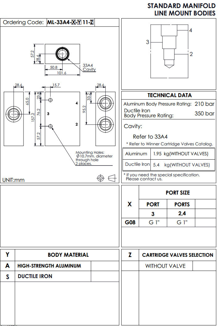 詳細信息 ML-33A4-G08-A11,ML-33A4-S08-A11,winner標準配管式油路板