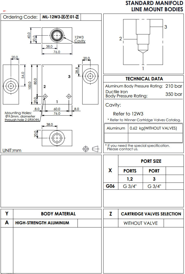 詳細信息 ML-12W3-G06-A01,winner標準配管式油路板