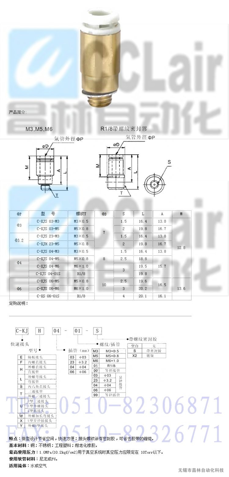 C-KJS03-M3,C-KJS03-M5,內六角直通接頭,