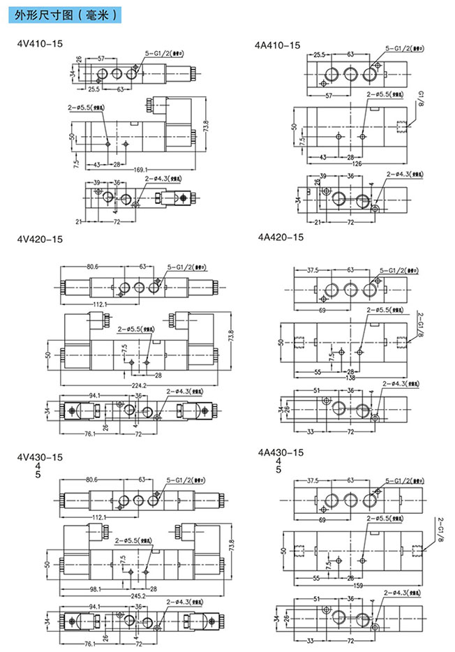 4A410-15,4A420-15,4A430-15,4A440-15,4A450-15,3A410-15,3A420-15,3A430-15,3A440-15,3A450-15,先導式3通5通氣控閥