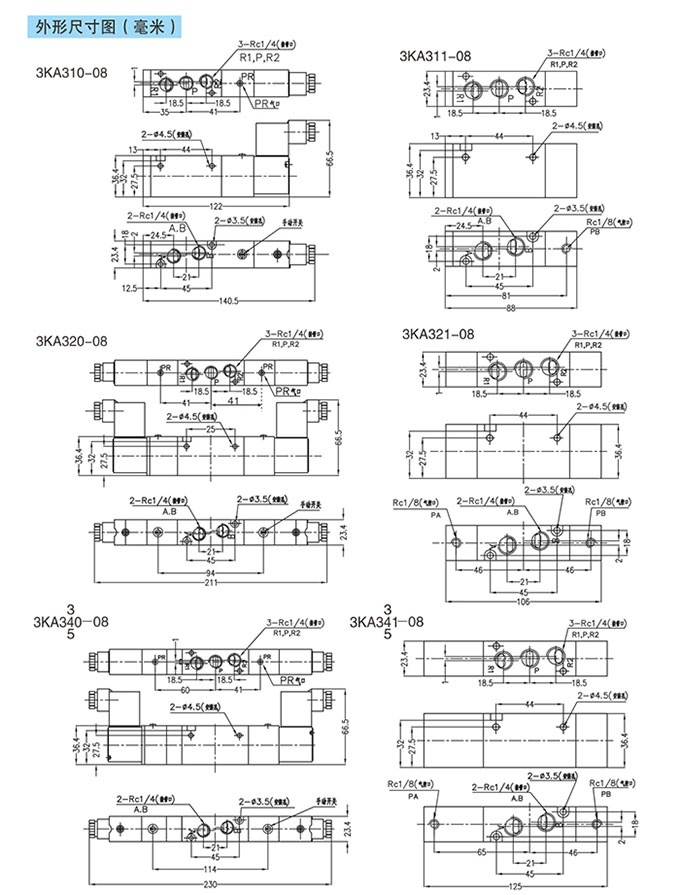 詳細信息 3KA311-08,3KA321-08,3KA331-08,3KA341-08,3KA351-08,先導式五通氣控閥