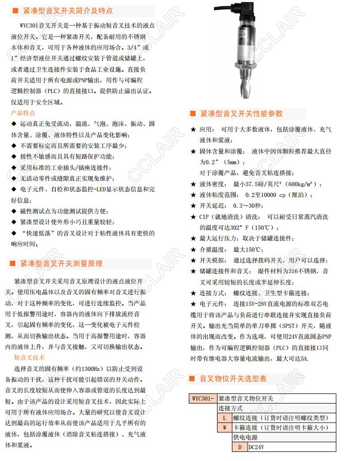 詳細信息 WYC301-LD,WYC301-WD,WYC301音叉開(kāi)關(guān)