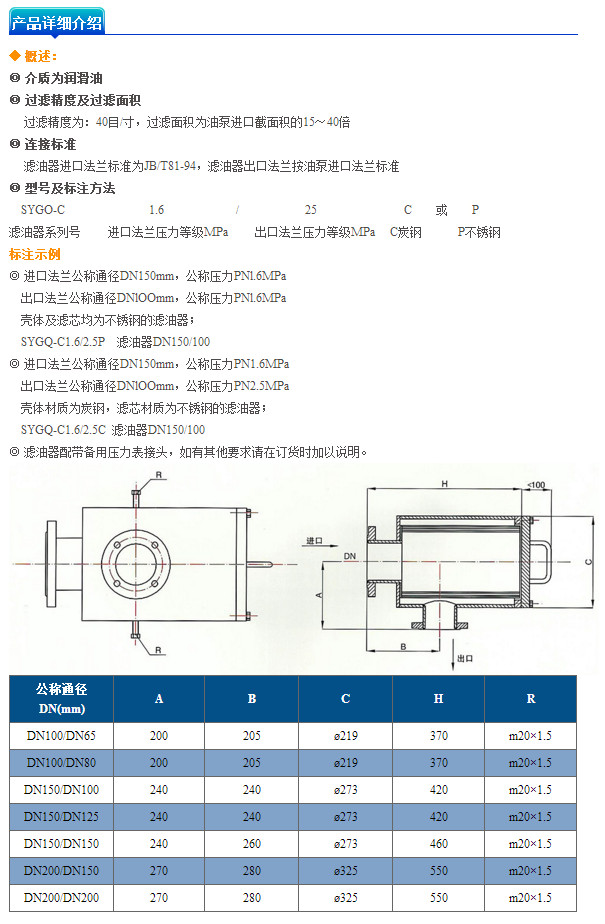 詳細信息 SYGQ-C1.6/2.5P,SYGQ-C1.6/2.5C,SYGQ-C系列濾油器
