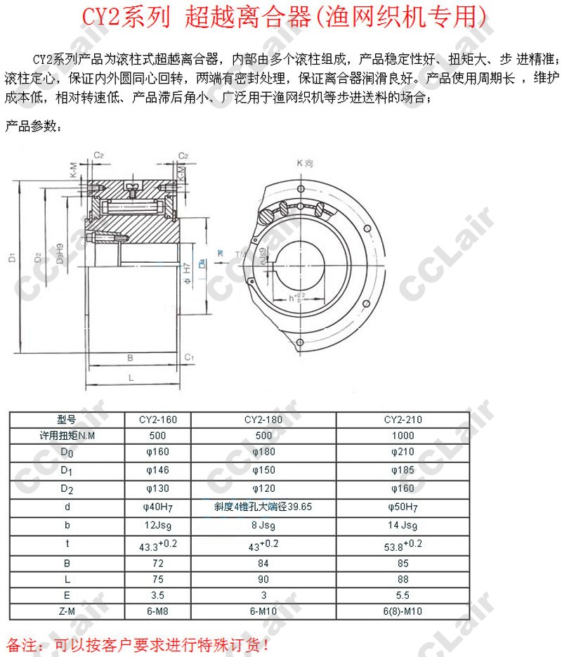 詳細信息 CY2-160,CY2-180,CY2-210,超越離合器