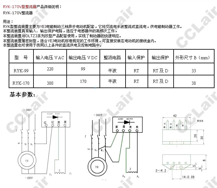 詳細信息 RYK-99,RYK-170,電磁剎車(chē)整流器