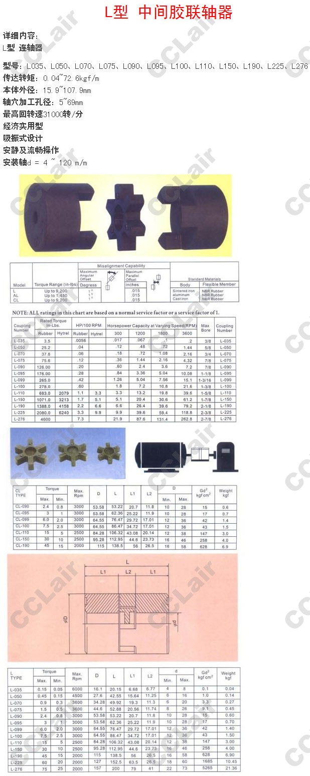 詳細信息 L-035,L-050,L-070,L-075,L-090,L-095,L-099,L-100,L-110,L-150,L-190,L-225,L-276,中間膠聯(lián)軸器