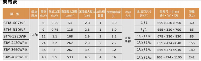 STM-607WF,STM-910WF,STM-1220WF,STM-2430WF,STM-3650WF,STM-4875WF,流量型水式模具控溫機