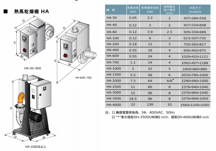 HA-30,HA-40,HA-60,HA-100,HA-200,HA-400,HA-600,HA-700,HA-1000,HA-1500,HA-2000,HA-2500,HA-3000,HA-3500,HA-4000熱風(fēng)干燥機