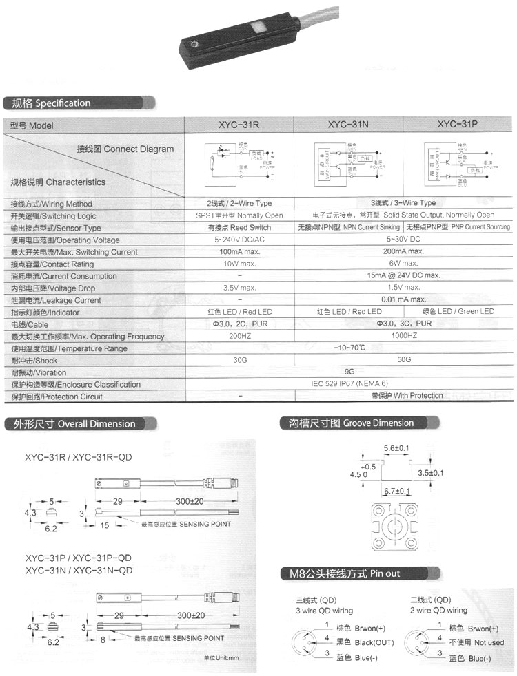 詳細信息 XYC-31R,XYC-31N,XYC-31P,磁性開(kāi)關(guān)