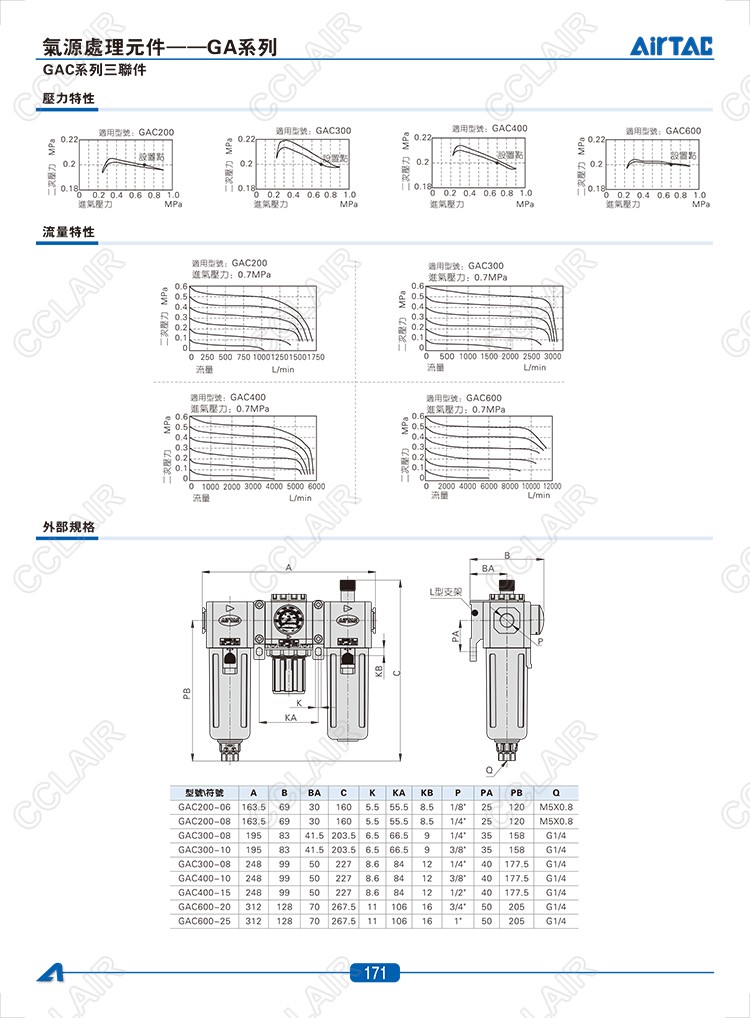 GAC200-06,GAC200-08,GAC300-08,GAC300-10,GAC400-08,GAC400-10,AIRTAC三聯(lián)件