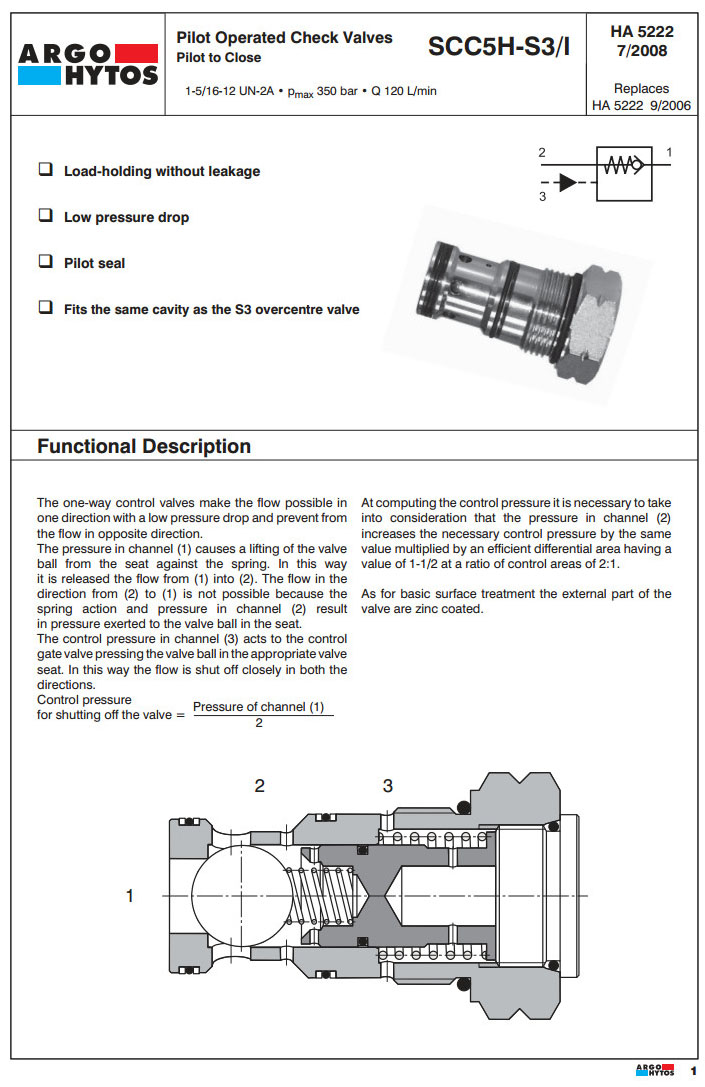 詳細信息 SCC5H-S3/I2,ARGO液控單向閥