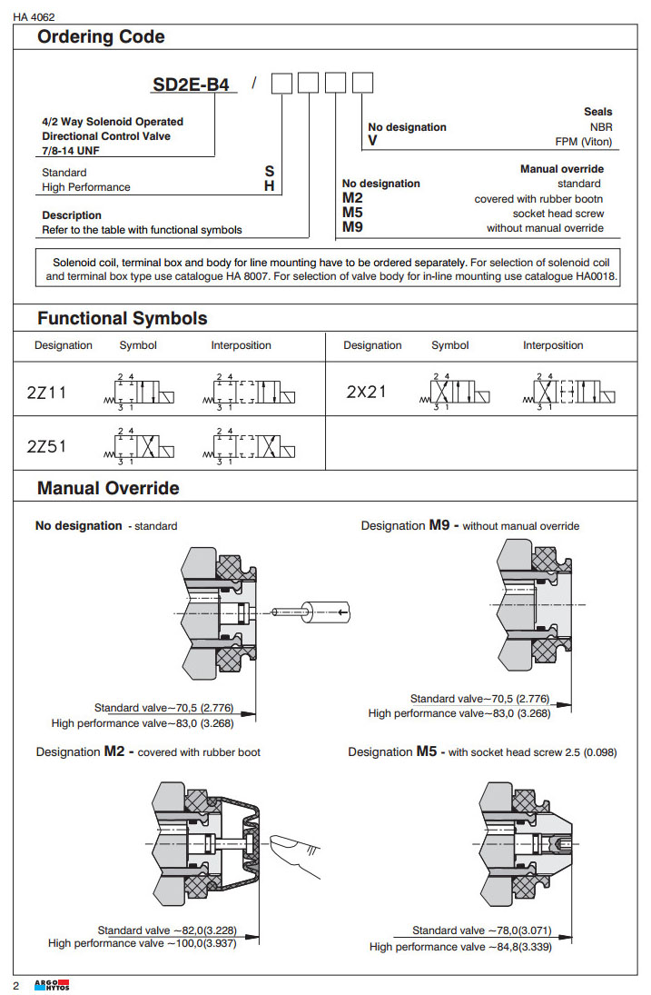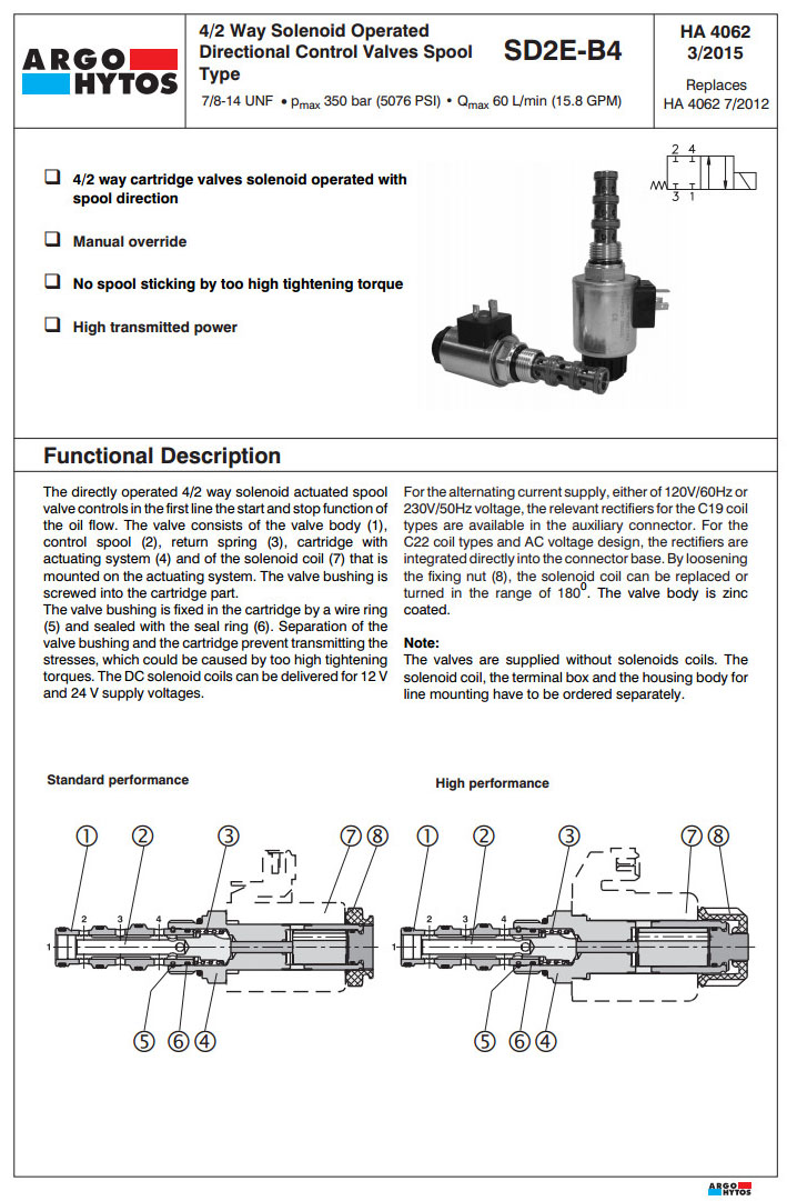 SD2E-B4/S,SD2E-B4/H,SD2E-B4/H2Z51M5,SD2E-B4/S2Z11M2,SD2E-B4/H2Z51M9,ARGO電磁方向控制閥