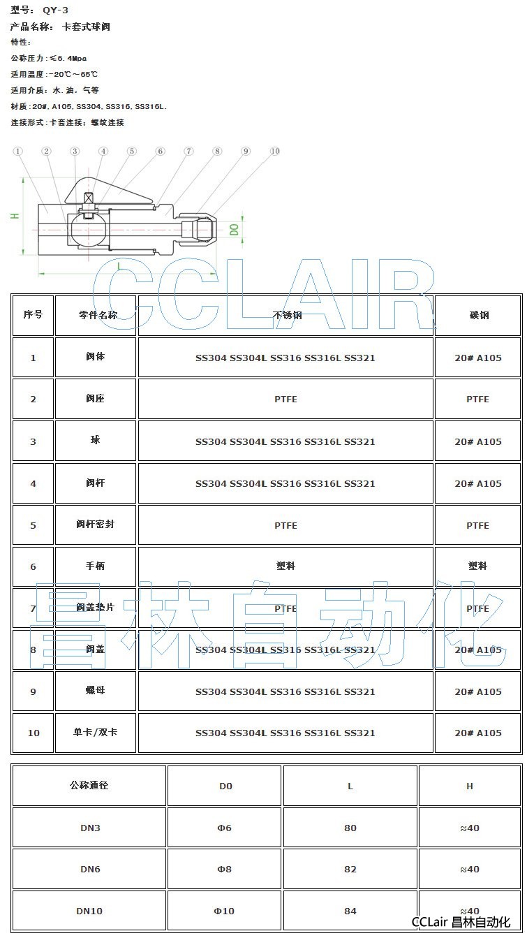詳細信息 QY-3,卡套式球閥
