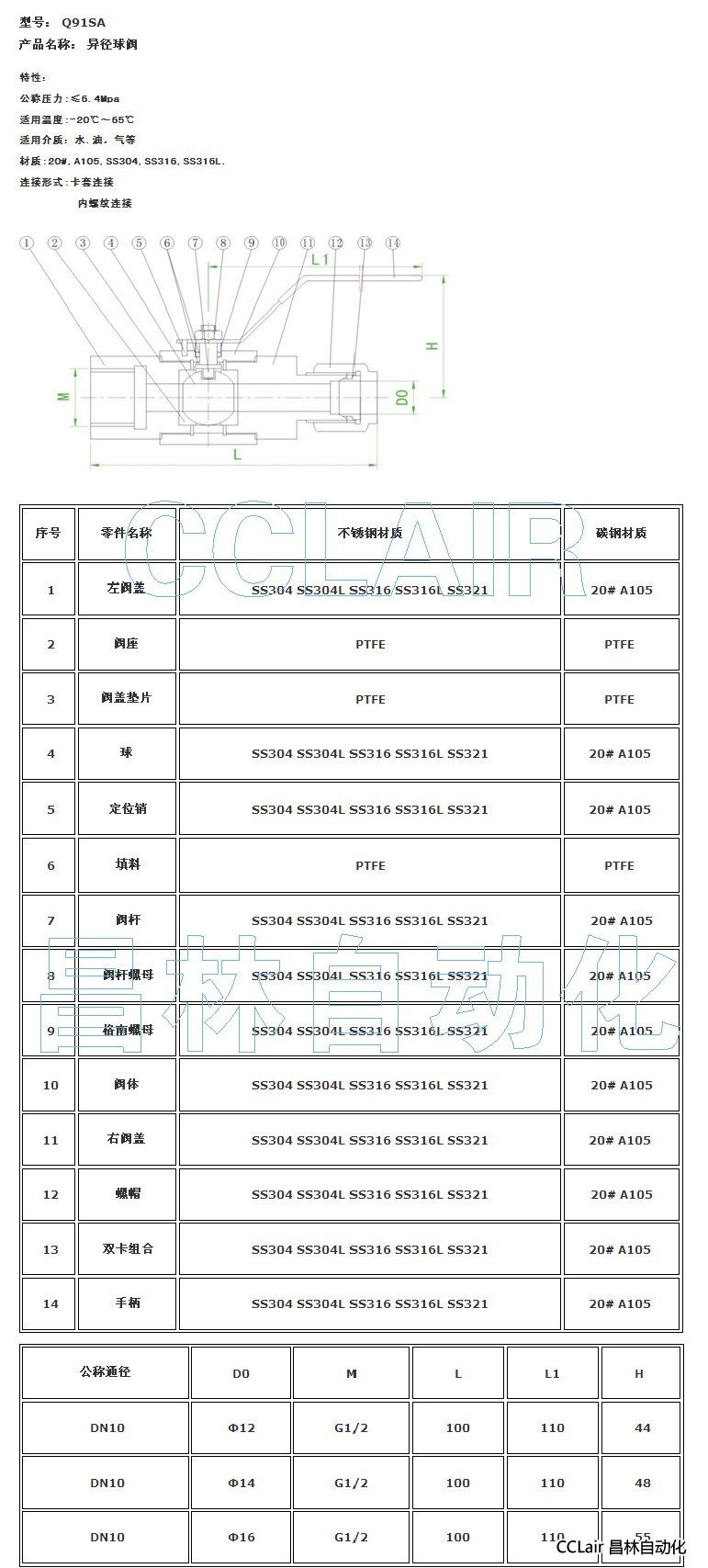 詳細信息 Q91SA,異徑球閥