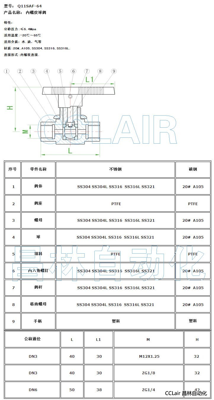詳細信息 Q11SAF-64,內螺紋球閥