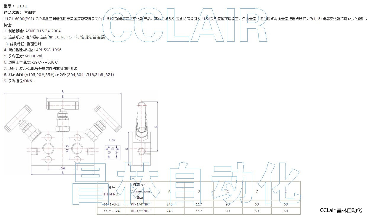 詳細信息 1171-6K2,1171-6K4,三閥組