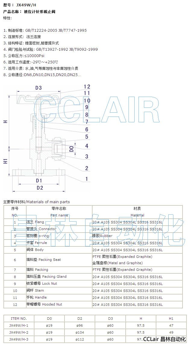 詳細信息 JX49W-1,JX49W-2,JX49W-3,JX49H-1,JX49H-2,JX49H-3,液位計針形截止閥