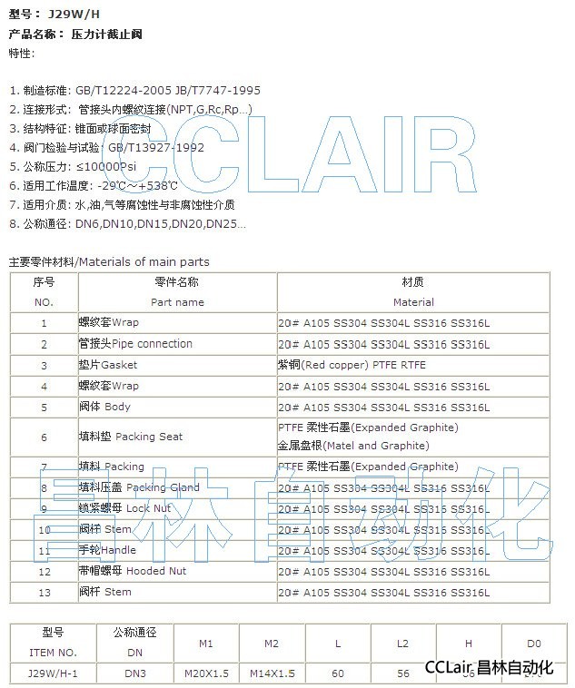 詳細信息 J29W-1,J29H-1,壓力計截止閥