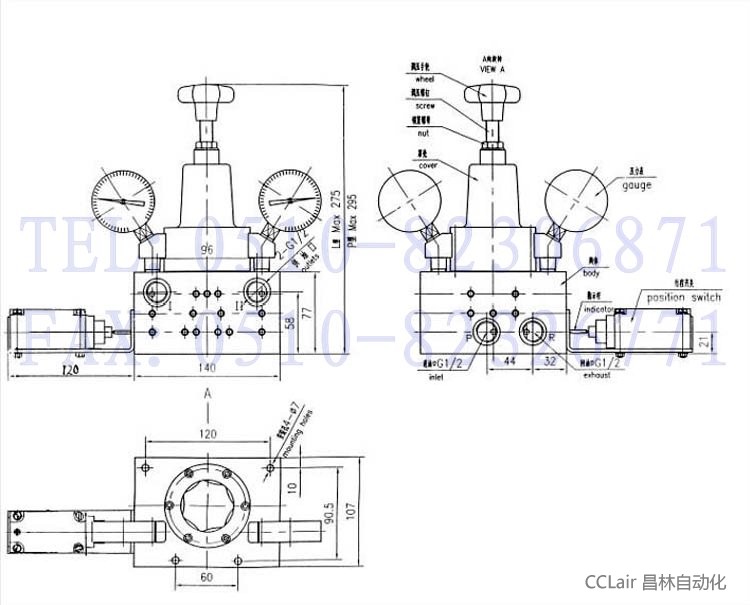 本閥為二位四通自動(dòng)液壓換向閥,上平面設有兩塊壓力表和調壓手輪。換向壓力由手輪調節,順時(shí)針壓力升高,反之壓力降低。本閥門(mén)進(jìn)油口P與泵出油口連接,回油口R接貯油桶,供油口Ⅰ、Ⅱ分別與兩條供油管路連接。工作時(shí)當Ⅰ路油壓達設定壓力,換向閥自動(dòng)切換到Ⅱ路,這樣潤滑泵就能循環(huán)往復地向兩條管路供送潤滑脂。