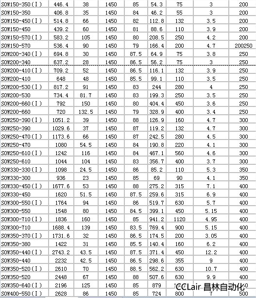 SOW150-450,SOW150-570(Ⅰ),SOW150-570,SOW200-340(Ⅰ),SOW200-340,