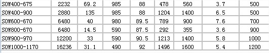 SOW200-660,SOW250-390(Ⅰ),SOW250-390,SOW250-470(Ⅰ),SOW250-470,