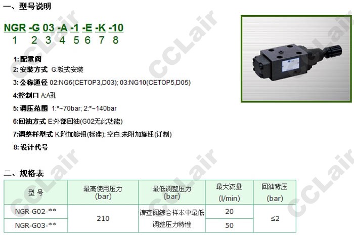 詳細信息 NGR-G02-A-1-E-K-10,NGR-G03-A-1-E-K-10,NGR-G02-A-2-E-K-10,NGR-G03-A-2-E-K-10,配重閥