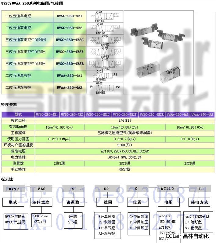 詳細信息 UVSC-260-4E1,UVSC-260-4E2,UVSC-260-4E2C,UVSC-260-4E2P,UVSC-260 4E2R,電磁閥
