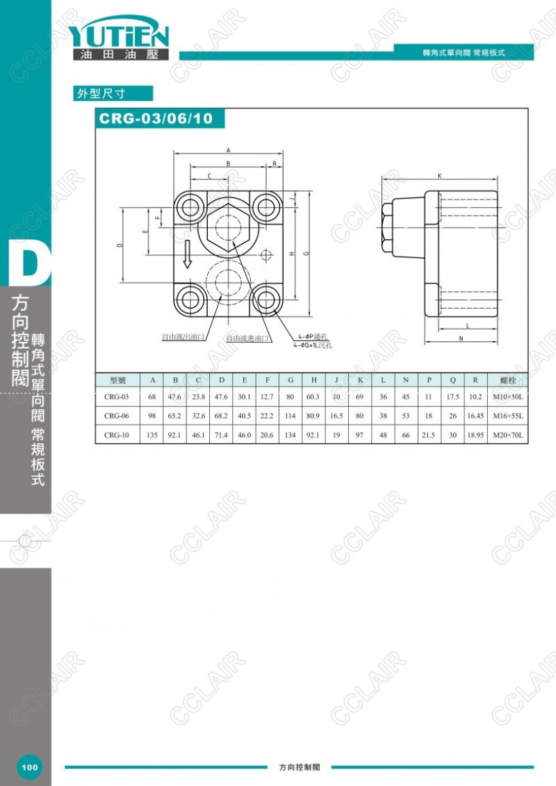 詳細信息 YUTIEN油田轉角式單向閥CRG-03-05,CRG-03-50,CRG-06-05,CRG-06-50,CRG-10-05,CRG-10-50