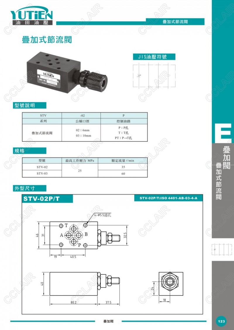 YUTIEN油田 疊加式節流閥STV-02P,STV-02T,STV-02PT,STV-03P,STV-03T,STV-03PT